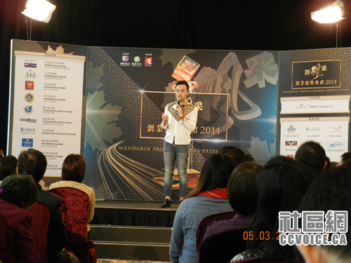颁奖晚会的司仪组合为《新枫采》的两位节目主持雨薇、晓露与廖立晖搭档。今年晚会将有本地多才多艺的艺术家们连袂奉上精彩的节目,包括多伦多青年女子乐坊的传统中国民乐作为开场,并与优美婉转的昆曲唱腔作开场表演;小提琴、竖琴、现代舞及泼画的新颖创意组合;着名男高音歌唱家张亚林连同昇韵合唱团的一众团员共同献上一场别开生面的音乐盛宴。