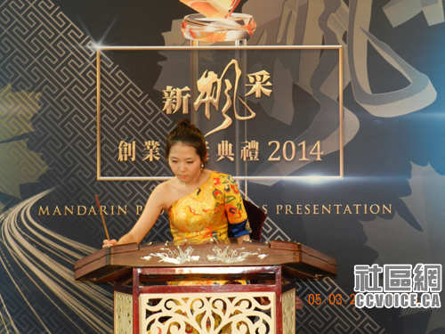 记者会上,来自多伦多青年女子乐坊的扬琴演奏家张迪代表乐坊为在座的媒体展示了中国传统乐器的魅力。另外,作为新移民来自“北京北方昆曲剧院”的优秀青年昆曲演员刘馨鸿于记者会奉上京歌《故乡是北京》。