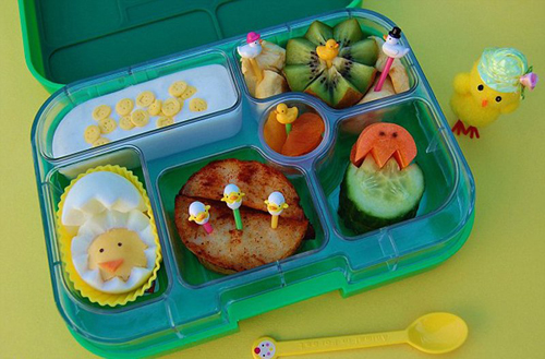 由于担心6岁儿子上学时午餐缺少胃口,豪尔每天中午用饭盒给孩子带午餐。在几种切割工具和模具帮助下,豪尔将三明治变成蜘蛛侠、将煮鸡蛋变成羊、西瓜变成复活节小鸡等。至今,豪尔已经为儿子做了数百种健康午餐。现在,每天孩子都很期盼饭盒带给他的惊喜。