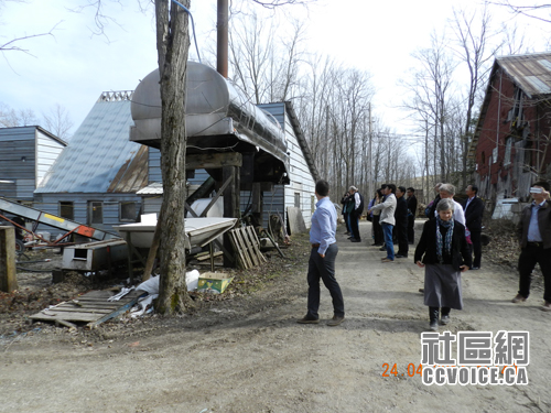 尽管严冬刚刚过去,早春还带着丝丝凉意,代表团走在乡间小道,大家还是能看到加拿大的美丽山水。接下来,由Darrol Bryant博士安排与带队,大家有幸走入一户曼侬人家。他们是从1973年就落户在St. Clements的人家,主人Simon和Erla夫妇已经半退休,大部分家业由儿子Norman打理,自己只留下一个木材加工厂。而今天的Norman已经拥有一个大家庭,养育7个小孩,他的主业是种植,以玉米为主,主要为养殖肉牛提供饲料,每年可出售150条牛;生产枫糖,有近3,500棵树;同时还销售生火用的木头。