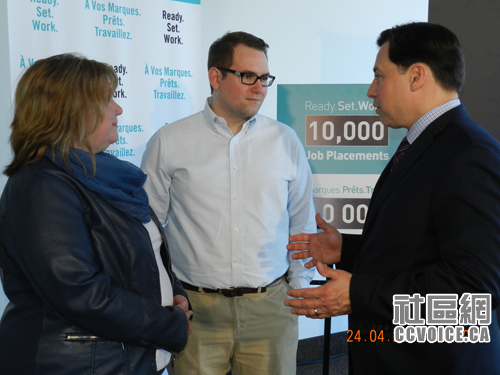4月24日,安省教育厅长Brad Duguid(Minister of Training, Colleges & Universities)与本地MPP John Milloy,前往Kitchener IT企业MappedIn召开新闻发布会,向公众通报Youth Jobs Strategy项目的进展及其意义。自去年9月实施,在KW地区,Youth Jobs Strategy项目已经帮助172名具有多重障碍找工的年轻人(15至29岁)成功找到雇主,提供至少4至6个月的职位。在全省范围内,资助的年轻人已经达到10,706,完全按预定计划,在两年内耗资2.95亿,为安省25,000名年轻人提供工作机会。John Milloy对本地雇主,包括新闻发布会所在地MappedIn雇佣年轻人表示谢意,他相信这是创建美好未来,提升安省经济的重要举措。而MappedIn执行总裁Hongwei Liu也感谢政府对于公司拓展的支持,目前员工数量已经达到16人,期待大的发展。新闻发布会之后,厅长Duguid观看了MappedIn的产品展示。