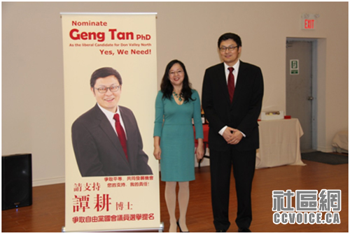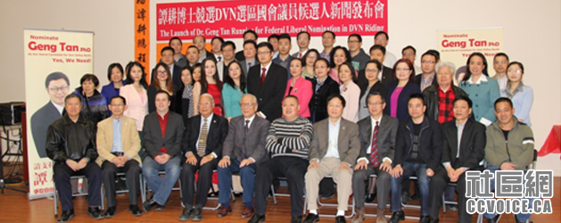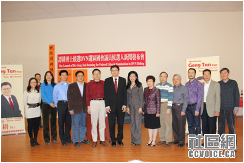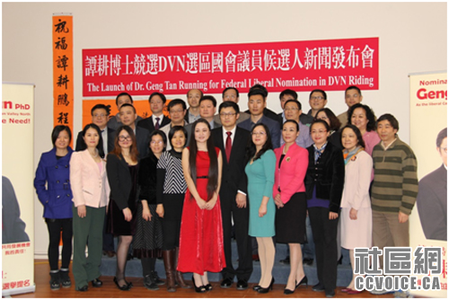 华社知名人士谭耕博士于4月27日就行的新闻发布会上正式宣布,将在新划的“当谷北”(Don Valley North)角逐自由党竞选国会议员提名。Don Valley North选区东起Victoria Park Rd. 西至Bayview,南以401公路为疆,北以Steels Ave为界。据统计,居住在此区的十万民众中,保守估计,有超过35%为华裔。谭耕博士将以这个区为他的竞选大本营,站出来为广大生活在加拿大的华人及各族裔的民众“争取获得平等,共同的发展机会”。