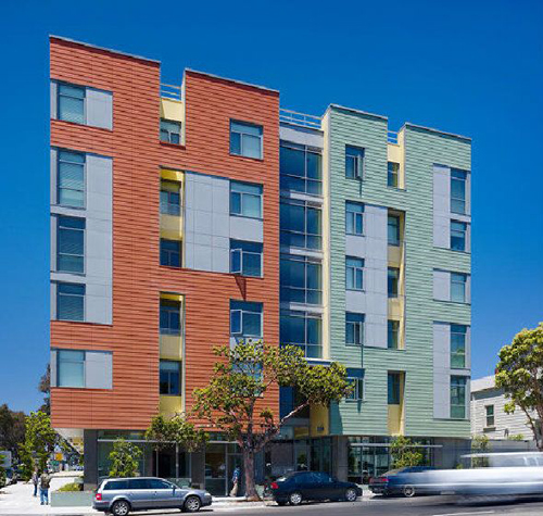 这是为老年人所建的高密度实惠公寓楼,拥有足够的公共空间来防止住户之间的相互隔离。该大楼位于奥克兰市区一条高速公路旁,为了隔绝日晒和噪音,其南侧面呈层状结构。
