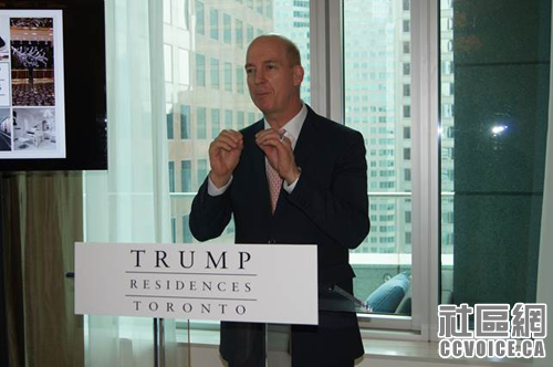 多伦多特朗普豪华酒店公寓(Trump ResidencesTornoto)总裁兼首席执行官尼尔-兰伯特先生(Neil Labatte)日前在其公寓的空中大堂与多位顶尖华语经纪,包括华人地产协会会长-致富地产总裁吴树声(Steve NG)、协达地产总裁刘玉山(Sam Liu)、国际集团董事会主席钟垣盛(Paul Jone)等举行面会交流活动,详细介绍了自其上任以来对该物业项目进行的管理和销售策略上的调整,并和与会者充分交换了对高端物业投资的心得和体会。兰伯特还邀请与会的嘉宾参观了名家设计的样板房和尚未撩开面纱的顶层超级私家公寓(The Super Penthouse)。与会嘉宾无不赞叹特朗普豪华酒店公寓所营造的奢尚生活品质。