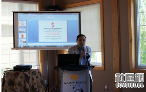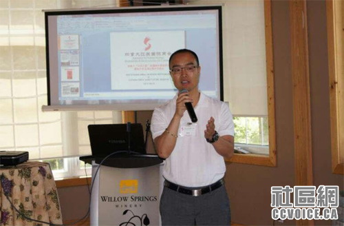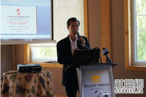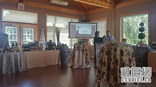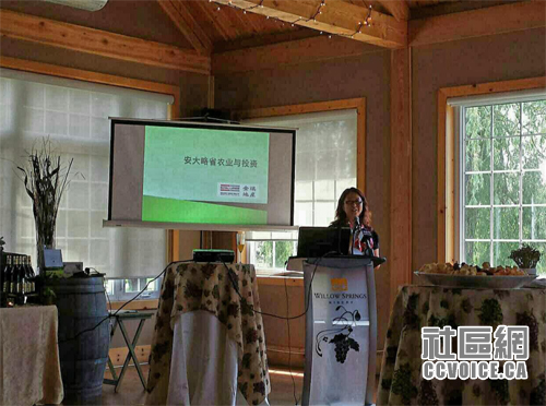 沈浩会长的商会介绍为酒会活动拉开了帷幕。安省省议员陈国治也作了即席发言。另外,三名嘉宾作了主题发言:杜兰区农业官员Nancy Rutherford介绍了杜兰区肉牛加工与冷藏项目;金瑞地产总裁张梅着重介绍了安省农业概况与投资;柳泉酒庄经理Michael介绍了安省葡萄酒庄的概况。