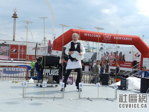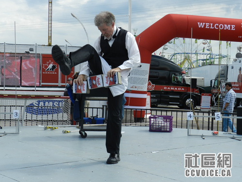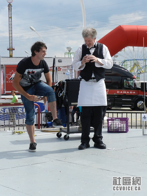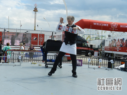 由于停车场的关系,我们从西门进入。因为与另外一个朋友有约,我们往Direct Energy Centre大楼直走。在路上,小孩看到有杂耍表演,嚷着要看,那就停下来看呗!杂耍并不一定需要多大的高超技艺,但是一定要逗围观的观众大笑。杂耍舞台一天内有不少表演者轮流使用,所以呀,你可以有选择地看一些的。