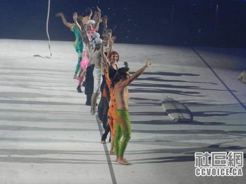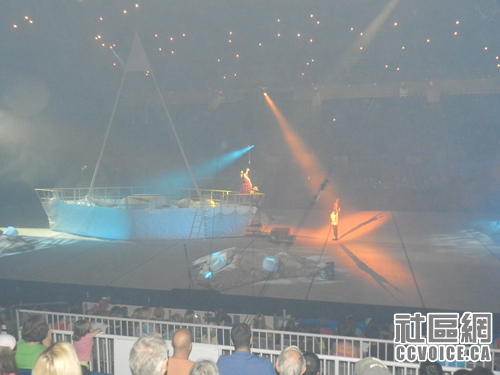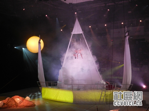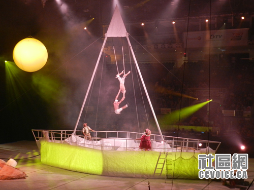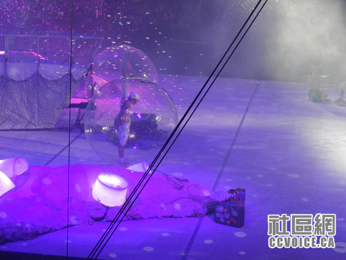 查看时间表,还有半个小时,表演才开始,小孩说要到外面先玩玩,所以我们从Ricoh走出来,看到可以玩游戏的地方,两个小孩就钻进去了,直到工作人员告诉他们,该是下一拨小孩了,他们才走出来。正好是杂技的开始时间,我们再度返回。至于整个杂技表演的什么内容,估计读者可以从图片中了解,在此不再啰嗦。