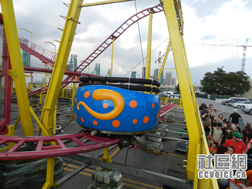 杂技之后,随着人流走出Ricoh中心。我们的下一站就是那些Ride,与小孩商量之后,儿子选择了疯狂老鼠,一路上女儿一直在犹豫,一定要我陪着才上的。不过玩完之后,她感觉还是不错的,这就好!接下来,就是女儿选择的摩天轮。尽管她已经坐个好几次,但还是有些担心,所以也一定要我陪着才行的。之后,最后还剩几张票,经过儿子与女儿讨论,他们两人自己去了,就是那种转盘。好像玩得还挺开心。