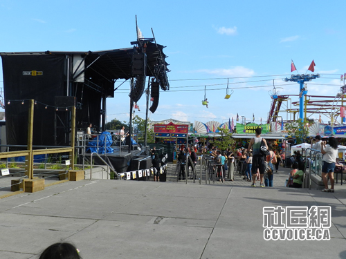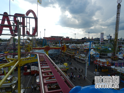 找到朋友之后,他负责两个小孩,我负责自己的两个小孩。那两个小子最喜欢各式各样的Ride,他们各自去了。我们计划选择看超级狗秀(SuperDogs Show),今年搬到了Ricoh Coliseum(一个冰球馆)。很遗憾,我们错过了时间!接下来的应该是杂技,也在同一个地方举行,而以往一般是冰上舞蹈与杂技结合,今年改革了。