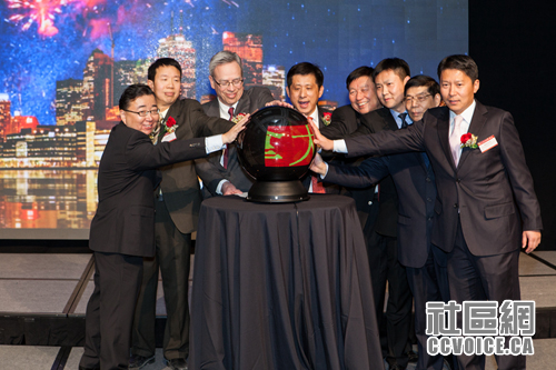 “第十届加拿大杰出华商颁奖暨新年庆祝晚宴”盛典组办方中华商会创会会长、第十届加拿大杰出华商颁奖典礼荣誉主席胡商及夫人、加拿大中华商会主席、加中市场发展联合会执行主席、加拿大国际商业发展集团总裁王标及夫人、以及大会共同主席郑宝忠、加拿大皇家天然品李江南、金山国际资本公司首席执行官郭健等80位特邀嘉宾在悠扬的苏格兰风笛声中步入第十届加拿大杰出华商颁奖典礼会场。出席大会的还有联邦加拿大总理及联邦政府内部事务副部长等四位副部长及安大略省研究与创新厅厅长Reza Moridi、12位大多伦多市市长、中华人民共和国驻多伦多总领事馆商务参赞于建伟以及首席赞助商丰业银行亚洲市场总监杨梁玉仪及先生。