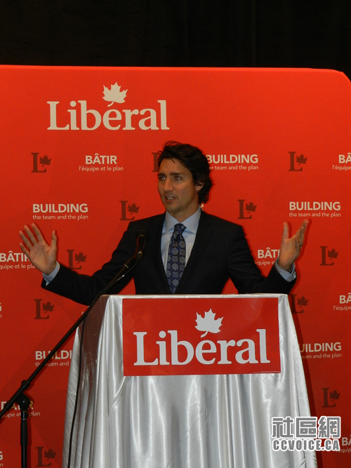 老牌自由党员,现任国会议员John McCallum做开场白,积极向年轻一代推崇Justin Trudeau的卓越领导才能。作为地主,Mississauga-Malton自由党候选人Navdeep Bains点名到场的候选人,让大家有一个简单了解。在Justin Trudeau正式讲话之前,Aurora–Oak Ridges–Richmond Hill自由党候选人Leona Alleslev介绍自己的祖父是从丹麦移民过来的,作为加拿大人,她感到很骄傲,对于Justin Trudeau,她更是感到很崇拜,觉得是加拿大人的骄傲。