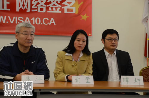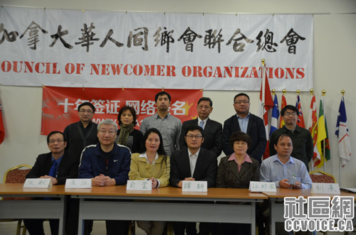 1月26日,加拿大华人同乡会联合总会(WWW.CONCO.CA)偕各省市同乡会、协会,连同多伦多华裔媒体工作者协会等数十个华人社团机构共同举行新闻发布会,宣布正式推出网络签名网站www.visa10.ca,以呼吁加中政府积极开展十年签证谈判。近百名社区各界人士和媒体代表参加了新闻发布会。烈治文山市市议员廖立辉和陈志辉、联邦自由党国会议员候选人谭耕、江邦固等本地华裔政界人士也到场表达了关注和支持。联邦参议员胡子修由于在渥太华开会无法出席新闻发布会,特意来电表示全力支持。