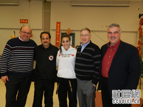 Shamuon Generations Martial Arts Centre与Chair of Waterloo Region Ken Seiling(右二)、滑铁卢市长Dave Jaworsky(右一)和Kitchener市长Berry Vrbanovic(左一)合影