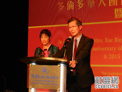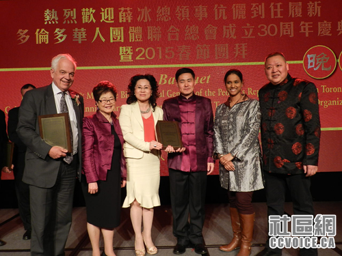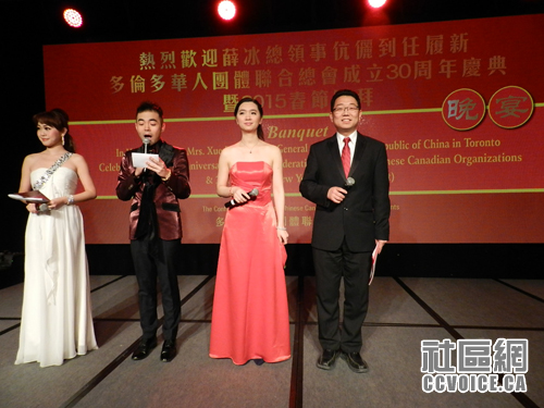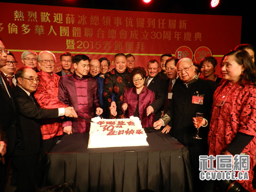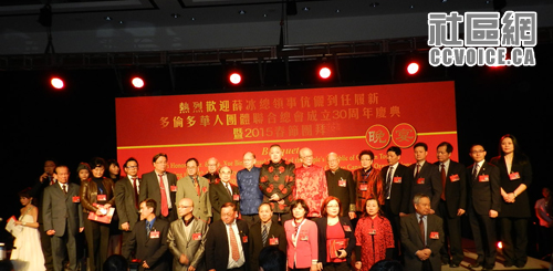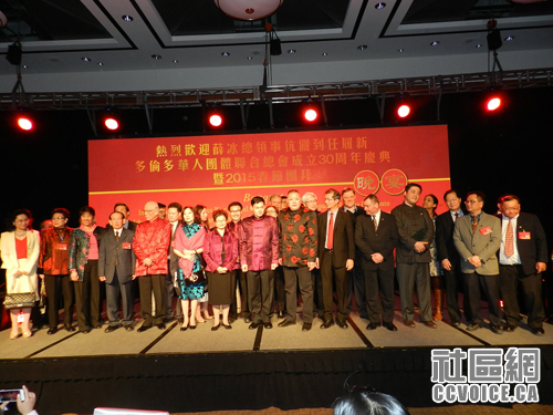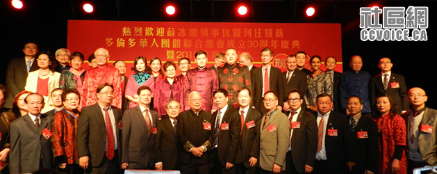 2月27日晚,多伦多华人团体联合总会在万锦市希尔顿酒店举办三喜同庆,欢迎中国驻多伦多总领事薛冰履新,庆祝多伦多华人团体联合总会成立30周年和第14届多伦多华人团体理事会成员就职典礼,三级政要以及社团代表等共逾1,200人出席。