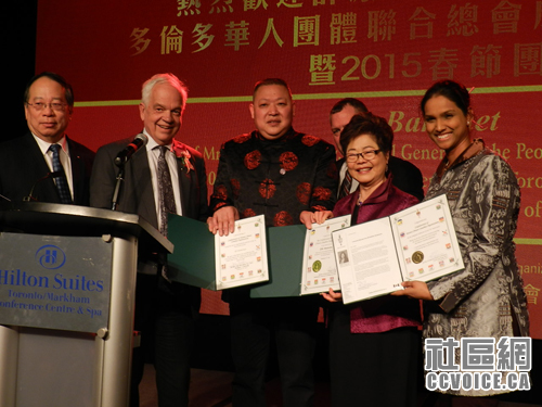 联邦长者事务国务部长黄陈小萍和薛冰总领事见证魏成义担任第14届多伦多华人团体联合总会主席