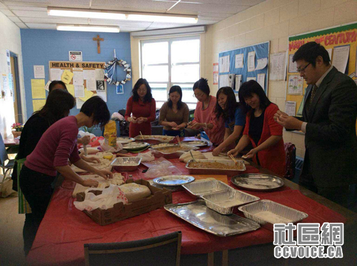最后,谭耕及其义工团队与学生、家长以及中文学校老师齐动手,准备了农历新年传统除夕大餐:包饺子,吃饺子。
