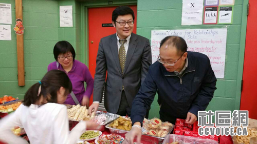 一大早,谭耕一行就来到学校,作为一名义工为庆祝活动做准备工作。在中间空暇之余,谭耕认真听取校长所计划的新年活动事宜以及中文学校的发展。在讲话中,谭耕不仅勉励学生们努力学习中文以及中华传统文化,弘扬加拿大多元文化精神,而且也赞赏家长们能在空余时间送小孩学中文,传承中华文化。最后,谭耕与大家分享了自己成长过程中“敢拼,才会赢”的经历。