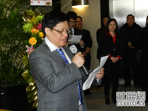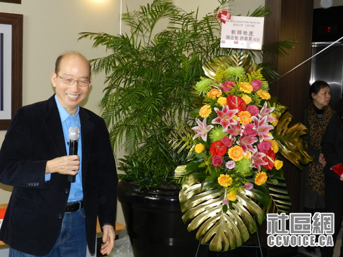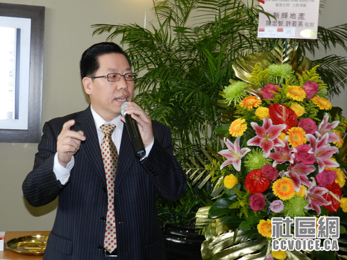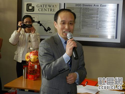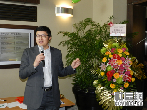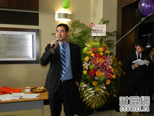 一街之隔的Don Valley North选区国会议员候选人谭耕博士致辞,希望最佳加拿大置业地产公司早日往多伦多开分公司,服务更多居民
