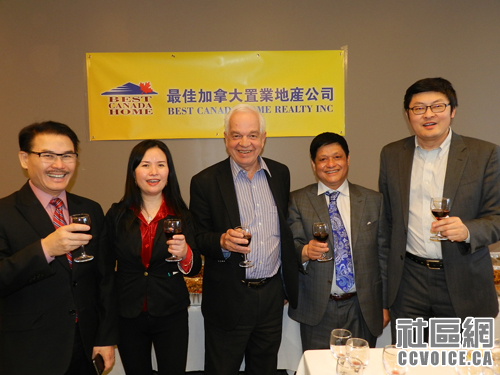 3月1日,最佳加拿大置业地产公司(Best Canada Home Realty Inc)开业庆典隆重举行,来自大多地区政界、地产界,商界、社团、新闻等各界代表100余人参加了庆典仪式。Alex Chiu议员代表万锦市长Frank Scarpitti致贺词并转发了贺书,约克郡议员李国强先生、万锦市议员何胡景、杨绮清以及列治文市议员陈志辉等众多父母官出席恭贺并参加了剪彩仪式,国会议员John McCallum(麦加廉)在仪式后匆忙赶来,送上良好的的祝贺。加拿大华人同乡会联合总会的众多会长,包括Don Valley North国会议员候选人谭耕博士以及其他许多侨领也纷纷前来祝贺,并一一致辞。