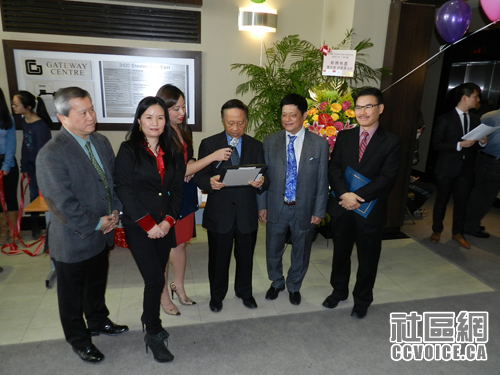 到场祝贺并致辞的同行同业人员以及嘉宾还包括一批建筑商、银行代表,他们分别是Milborne,Tridel,Concord,Monarch Corp Develop Co,加中地产投资中商会,Imperial Realty,TAES Architects Inc.,BMO,中国银行,Walton Capital Management Inc.,合肥之友,达尔文学校校长等,大家纷纷祝贺,对公司两位董事/总裁的能力、勇气、智慧、毅力以及人品都予以了肯定和赞誉。