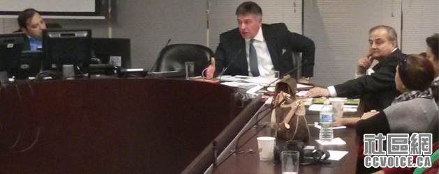 5月12日晚,加拿大全国族裔媒体协会(National Ethnic Press and Media Council of Canada)月度会议在多伦多市政厅(City Hall)第二会议室常规举行,安省财政厅长Charles Sousa作为特邀嘉宾出席。这是自安省最新发表2015年预算案之后,会见族裔媒体代表。