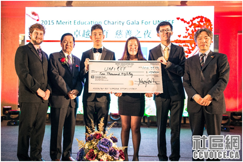 截止活动当晚,本届慈善筹款晚宴现场共筹得善款$10,080,加上加拿大政府为尼泊尔地震捐款配套的$5000,共计$ 15080;作为活动主办方,卓越教育当场将善款全数捐给联合国儿童基金会,款项将用于解救18岁以下的从军儿童以及援助尼泊尔震后幸存儿童!