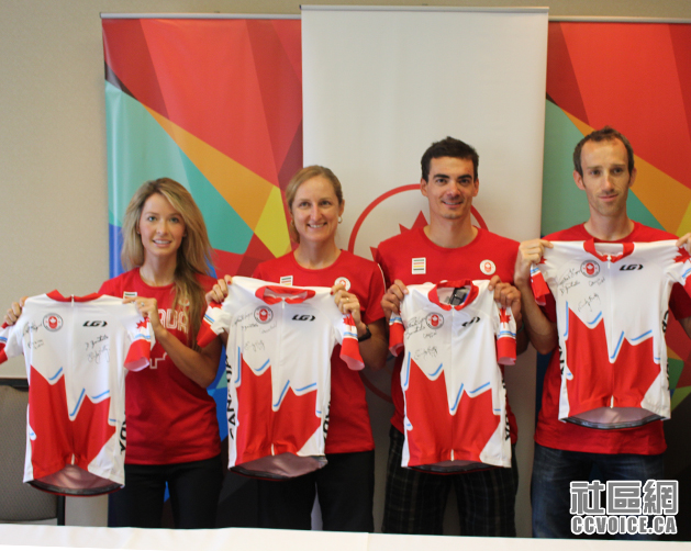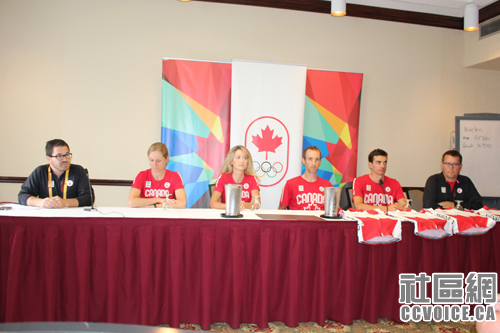 7月7日,加拿大山地自行车(Mountain Bike)国家队全部队员会见媒体,在简单自我介绍之后,现场回答了记者提问。国家队女子队成员包括来自安省Booklin,属于Trek Factory Racing的Emily Batty,和来自BC省Kamloops,属于Luna Pro Team的Catharine Pendrel;男子队成员包括来自魁北克省魁北克市的Raphael Gangne,属于Rocky Mountain Bicycles,和来自安省Trenton,属于Scott-3 Rox的Derek Zandstra。男女队将参加越野自行车赛(Cross-Country)。教练是来自BC省维多利亚的Dan Proulx,比赛将于7月12日在Hardwood Mountain Bike Park进行,欢迎大家前往观看。