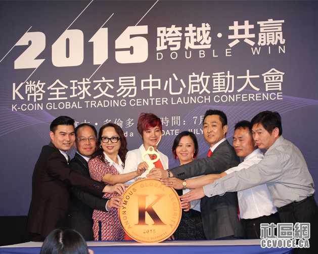 7月6日晚,2015跨越·共赢–K币全球交易中心启动大会在多伦多Westin Harbour Castle举办,来自中国、美国、英国、日本、韩国、澳大利亚、香港等国家和地区的近300名K币精英到场参加。