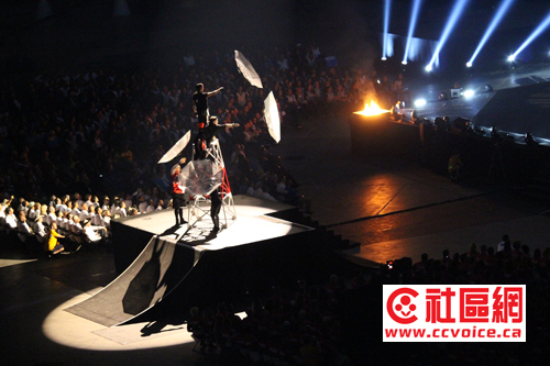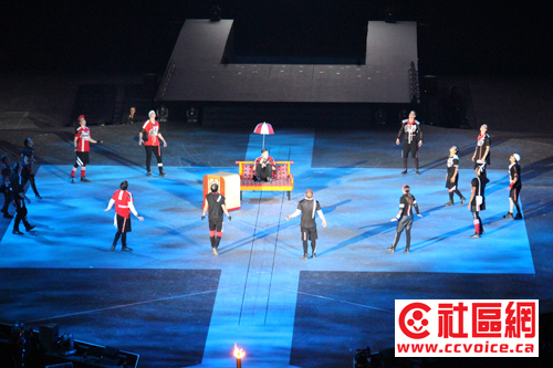 第二点感想是什么呢?其实加拿大还是挺能折腾的,也舍得花银子。就拿这次开幕式来说,聘请世界有名,也是加拿大最顶级的马戏团来策划与实施,可以说是完美无缺,当然其中花了多少银子,至少小记目前还不清楚。整个开幕式的庆祝活动,其实是有很多故事组成的,但你需要有一定的历史知识才能解读的,下面让小记来简单介绍介绍。