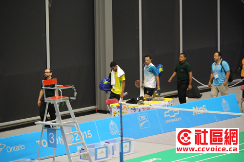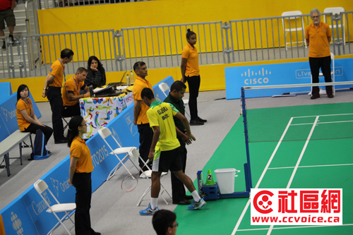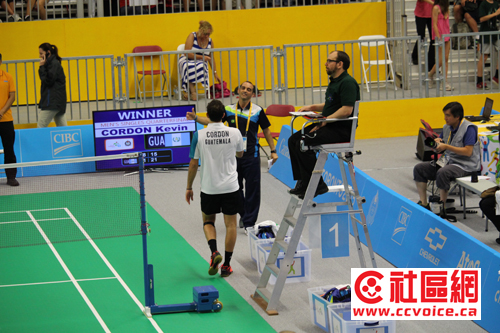 因为汽车出现了一点状况,小记不得不调整今天的计划。将车送入车行检查之后,小记又来到了Atos Markham Centre,羽毛球比赛还没有结束。目前正在进行的是男子单打,巴西De Oliveira Ygor.对Guatemala的Cordon Kevin,双打是美国Chew Phillip/Pongnairat Sattawat对Jamaica的Henry Gareth/Reid Dayvon。双打刚刚结束,美国队2:0赢。两者都是1/4赛。单打还在进行中,第一局Guatemala领先,第二局还是Guatemala赢,比赛结束。