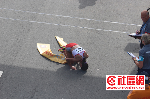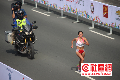 7月18日早上7:05,泛美运动会女子马拉松如期举行。在比赛前一天,气象台发布了周末炎热警报,最高气温超过30度,体感温度超过40度。但事实上,小记赶赴现场的时候,真的没有想象的那么热。比赛在Ontario Palace附近举行,湖风习习,真还是不错的享受。但是在夏天跑马拉松,那确实是生命极限的较量。请看现场精彩图片报道。