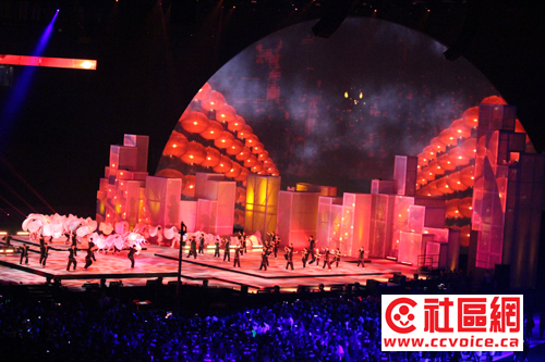 记者想强调一点的是主办方对中华文化的演绎,相当地道。先是一副浩大的中国山水画,优雅精致。接下来是由大红灯笼搭建的一道大门,而活灵活现的神龙从中显现。舞台上,大家玩的是太极。这是记者首次从主流所举办活动中对中华文化表达最让人感动的一次。估计现场的华人观众会有同感。