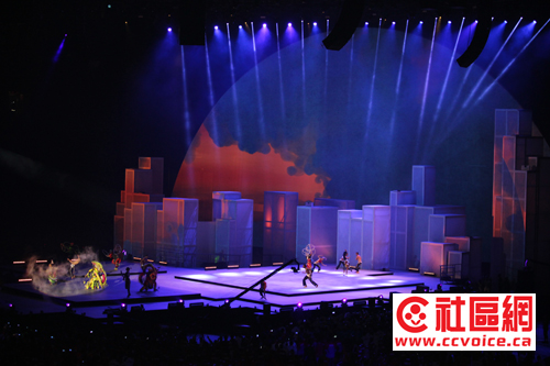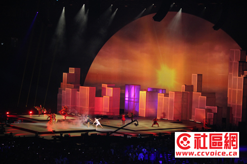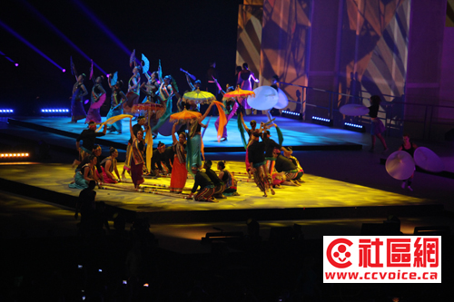 在变换莫测的舞台背景衬托下,舞台上呈现与之配套的名族风。从巴西杂技,至中华太极,至First Nation、加勒比海、印度、菲律宾舞蹈,以及爱尔兰的踢踏舞,充满活力与激情四射,让现场观众有机会享受各族裔风情的盛宴。
