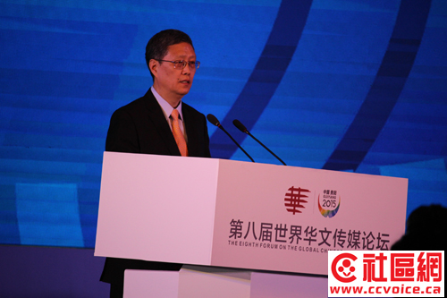 第八届世界华文传媒论坛22日在贵州省贵阳市拉开帷幕。中共中央政治局常委、中央书记处书记刘云山和十二届全国政协副主席、中国留学人员联谊会会长韩启德致贺信,全国人大常委会副委员长艾力更·依明巴海出席开幕式并致辞。国务院侨办主任裘援平在开幕式上发表主题讲话。今年是海外华文报刊创办二百周年,为此,开幕式上还播放了《荣耀与使命–海外华文报刊200年》的专题片。