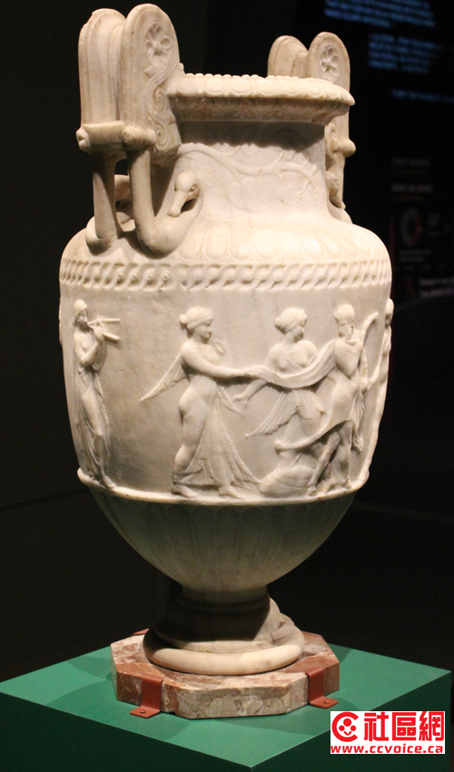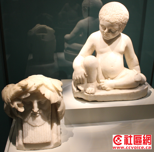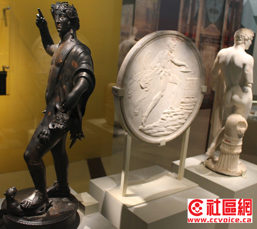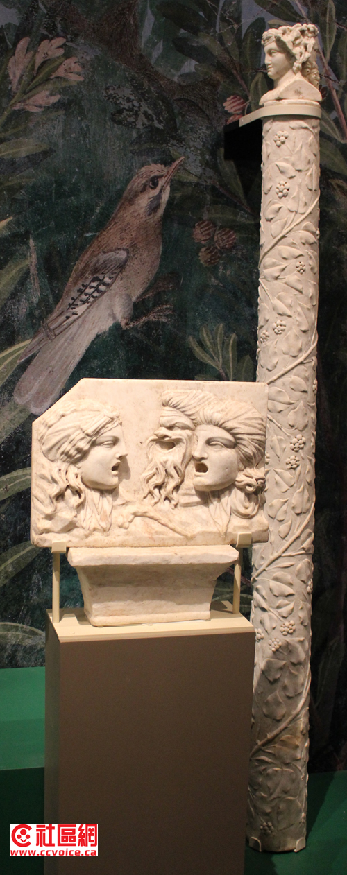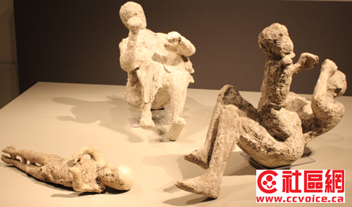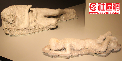 在ROM的Pompeii展,试图通过不同形式来表达当时的文化,诸如雕刻、餐具、商业贸易、服饰、甚至性文化等。也许你不相信,从Pompeii街道上随便捡起一块石头或残墙,它都可以作为文物保存的。事实上,在ROM展示中,许多类似油画的东西,其实这只是一块残墙。这让记者想到了不久前在敦煌参观的莫高窟壁画。从单一壁画本身来说,艺术性与创造力有限,但是时间改变了一切。当众多壁画汇聚在一块,经过几百年,甚至上千年的时间流逝,它们的艺术价值才得以体现。