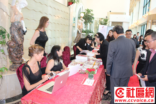 从下午5:30开始,宾客陆续到达,在觥筹交错中,大家热议电影行业。第一,中国电影行业与北美同行交流、合作春天的到来。大家期盼中国大陆的资金与潜在市场,与北美的技术、题材及营销模式,有效结合,将影视业这块蛋糕做大做好,各得其利。第二,不乏有一批追星族,希望抓住机会与心中的大明星合影聊天,当然能得到一签名,更是欢欣。第三,靓女俊男中,带有梦想的人不少,也许他们有好的题材,也许他们有成为超级明星的梦想,也许他们希望借此机会营销自己的产品,特别是奢侈品,……,可以说,大家相见恨晚,交流甚欢。