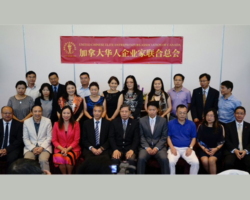 加拿大华人企业家联合总会(United Chinese Elite Enterpreneurs Association of Canada,简称UCEEAC)于9月17日在钓鱼台国宴隆重举行新闻发布会宣布正式成立。中国驻加拿大多伦多领事馆商务参赞于建伟、列治文山市市议员陈志辉、万锦市议员、兄弟社团的负责人及代表、社会各界的企业家、知名人士以及媒体界的朋友等五十余人应邀出席了大会并热烈祝贺协会的成立。加拿大华人企业家联合总会首任会长、知名企业家和社会活动家水寿松先生率领协会领导团队部分成员和部分理事会成员与媒体界朋友和各位嘉宾亲切见面。