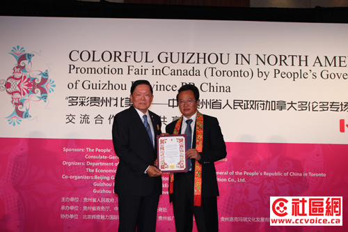 最后,加拿大贵州省商会负责人热忱欢迎代表团的到来,并介绍当天到会的华商会超过20名负责人到场,希望能为故乡贵州的发展献计献策,出钱出力。本次活动由中国贵州省人民政府和中国驻多伦多总领馆主办。