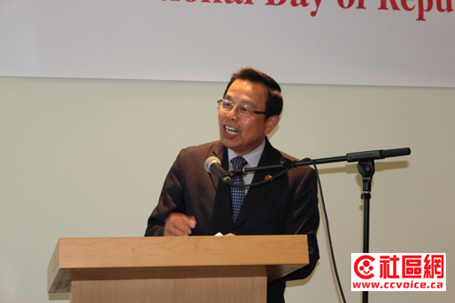 在演出前的酒會上,駐多倫多台北經濟文化辦事處處長吳榮泉在講話中,介紹了本次演出的背景,那就是每年雙十節台灣所重視的文化交流活動。吳處長盛贊Renison University College學院的The Centre for Global Engagement through Languages and Culture對本次演出所做的工作。同時指出,特別要感謝滑鐵盧地區僑界的大力支持及贊助,包括滑鐵盧台灣同鄉會、吳僑務咨詢委員罕台賢伉儷及蘇相國等,讓國慶文化活動與主流社會結合並擴大成效。因此,吳處長特意給該次活動主要贊助商贈送禮物。