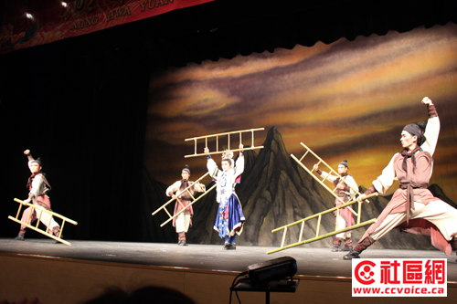 而《護國將軍》以兩軍對陣的戰爭場景,展現傳統戲曲中的武術身段,並配以唱腔,演員功力宏大。在戲中,將攻城器具,長樓梯搬上舞台,倒是很有新意。實在是記者首次體驗,感覺非同平凡。