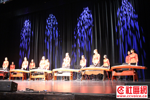 当晚音乐会以范上娥古筝学院成人组演奏开始,他们的弹奏曲目是“春江花月夜”和“站在高岗上”。前曲以优美安静的旋律,展示江南水乡的迷人景色,好似一幅工笔精细、清丽淡雅的山水画卷,引人入胜。后曲为高山族民歌,曲风奔放浪漫,把自然风光描绘得特别辽阔壮美。