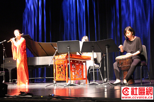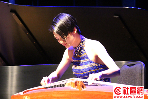古曲“妆台秋思”乃取材于昭君出塞的故事,乐曲借汉代佳丽王昭君离开故乡,远嫁匈奴后,日夜思念故国,抒发一种哀怨凄楚地情愫。由范老师古筝演绎,王平笛子伴奏。上半场的压轴戏是范老师演绎自己的得意之作“银河碧波”和“鳞波曲”。前曲描绘山乡的春天,渠水涟漪,碧波荡漾,美丽如花,歌声飞扬的情景,尽显山乡人们的欢乐;后曲描绘在辽阔的湖面上,阳光闪耀,碧波粼粼,面对这美丽的湖光水色,人们感慨万分,憧憬着美好的未来。