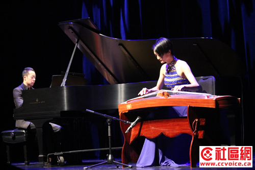 当西方与东方相遇,也就是古筝与钢琴二重奏,演绎“临安遗恨”时,全场静寂了,大家为其美丽所叹服。该曲取材于传统乐曲“满江红”,表现力南宋民族英雄岳飞遭奸臣陷害,囚禁在临安狱中。赶赴刑场的前夕,岳飞面对社稷所面临危难的焦虑,对家人处境的挂念,对奸臣当道的愤恨,以及对自己精忠报国却无门可投的无奈而引发的感慨。