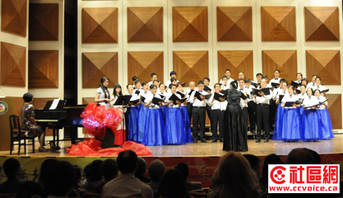 滑铁卢华人爱乐合唱团10月17日晚在Wilfrid Laurier University Maureen Forrester Recitall音乐厅成功举办首届爱乐之声音乐会。滑铁卢华人协会会长潘刚主席和瑞邦集团的Cindy女士对音乐会的成功举办,给予了衷心的祝福。甜美的主持人李燕给观众介绍了爱乐合唱团的来历。该乐团成立于2010,由一批音乐爱好者自发组建,如今有成员超过50人。滑铁卢地区社区里的每次活动,一定少不了他们的歌声,近五年来,每年都有参加海外华人音乐节。