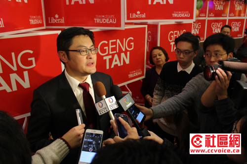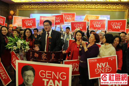 对于热心参与社区活动的人,一般都有一股热心肠,有“先天下之忧而忧”之气概。谭耕也不例外,在社区活动参与的同时,他深深地感到新移民生活的不易。要想对新移民有所帮助,许多政策都是政府层面上的。也就是说,要想参与政策的制定,参政是唯一选择。笔者相信,谭耕参与愈多,感受愈多,参政的愿望也就是愈强烈。日积月累,谭耕就能痛下决心,放弃目前舒适的专业工作,从零开始走上从政之路。