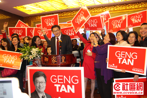 确实,谭耕的义工队伍绝对不是专业的竞选行家,而是一只草根队伍,或者说是地道的杂牌军。可能是受谭耕的影响,整个义工队伍所表现的风格完全一致,那就是坚韧、执着、勇敢与奋进。大家学会分工的同时,相互之间绝对合作,一方有问题,八方提供办法。义工队伍的目标很明确,那就是将谭耕送到渥太华。正是由于这种众志成城的决心,谭耕赢了,他们的目标也就实现了。