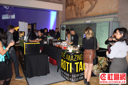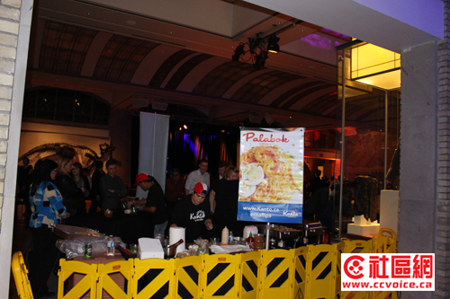 这一次,记者顺利进入,大家都在排着队购票入场,假若提前购票,你当然就可以直接入场了。现场音乐震天响,非常热闹。原本相当安静的博物馆变成了一个演出场。DJ在努力工作着,各种食品摊位排队为患,原来要求19岁以上方可入场,因为现场销售酒水。在入内的墙壁上,正在播放多伦多国际时装节的视频,这可能算是与主题相关吧!摄影服务处也非常热闹,可不?专业人士给你化妆,专业人士给你装饰,加上专业人士给你摄影,难得的明星般享受!