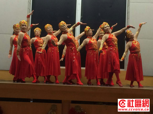 晚会在救世军合唱队嘹亮的歌声中拉开序幕。红枫晚霞合唱队为观众演员唱《游击队之歌》和《朋友再见》两首歌,队员们感情饱满,倾情演唱,向观众展现我们积极阳光向上的精神风貌。红枫晚霞舞蹈队献上《彩云飞》和《鸿雁》,热情欢快的彝族舞,深沉奔放的蒙古舞带着浓厚的民族特色,在列治文山舞台上刮起浓浓的中国风。我们的精彩表演赢来观众热烈的掌声,晚会在救世军热情奔放的拉丁舞中降下帷幕。