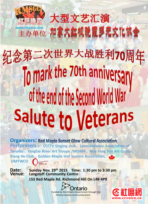11月20日晚上在列冶文山文化艺术协会举行盛大圣诞亮灯仪式和文艺晚会,众议员和二战老兵应邀出席,而红枫晚霞合唱队和舞蹈队应邀参加演出,与外国朋友同台献艺。