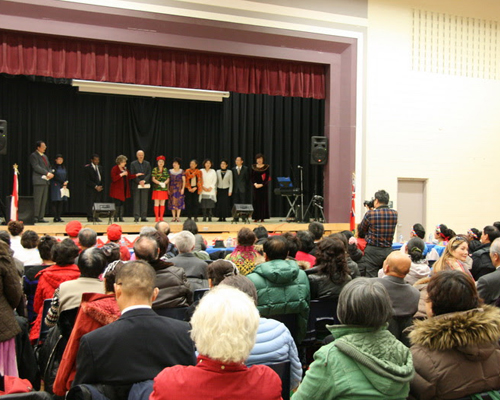 由红枫晚霞多元文化协会主办,纪念第二次世界大战胜利70周年向老兵致敬大型文艺汇演于11月29日在列治文山市Langstaff社区中心剧场隆重上演,本次话动得到了安大略省政府的支持,省议员Reza Moridi先生、列治文山市议员Karen Cilevitz女士和老兵联盟会主席Emmanuel Abara博士亲临现场祝贺并观看演出。更令人鼓舞的是Cilevitz议员从始至终,一直到汇演尾声,上台和大家一齐高唱《友谊地久天长》。